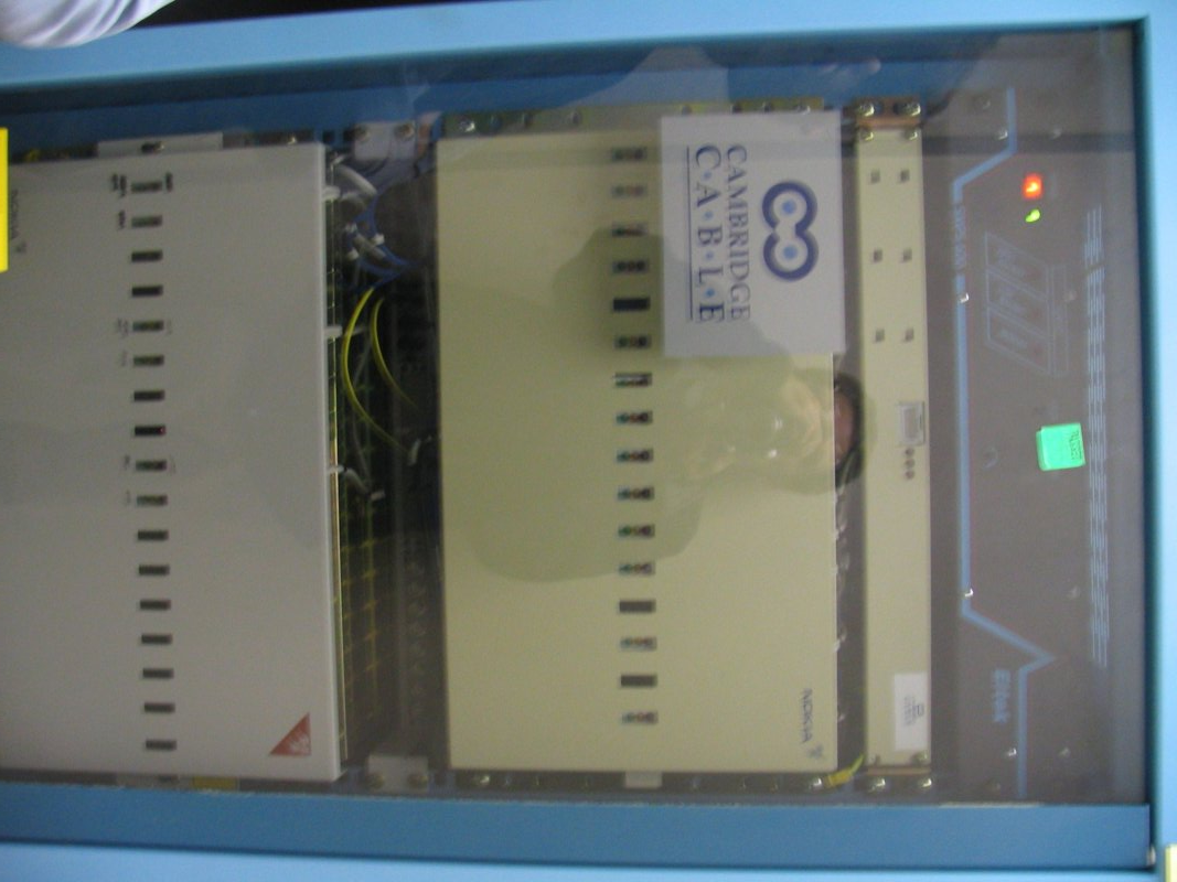 the hub of the cambridge internal phone network, plus photographer in reflection
